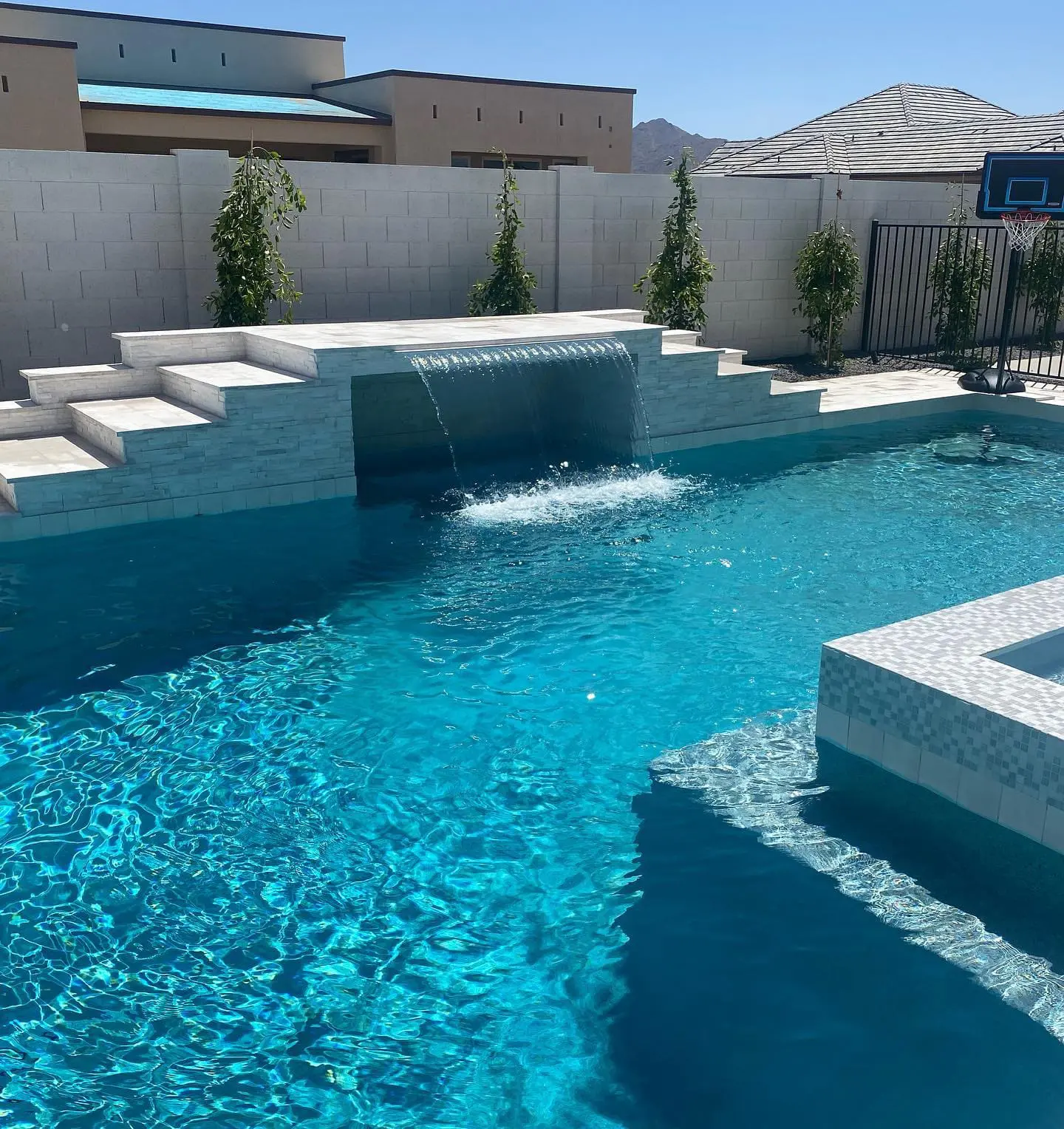 Below are a few water feature types; however, each design can be customized to blend seamlessly and beautifully into your backyard pool and surrounding areas.